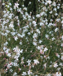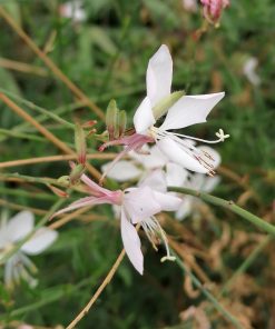 La Gaura Lindheimeri alba appartiene alla famiglia delle Onagraceae. Con i suoi steli lunghi, leggeri e ramificati e la sua prolungata fioritura di colore bianco, questa varietà è una delle erbacee perenni più indicate per dare colore e leggerezza in estate al giardino in aiuole con fioriture miste o in terrazzo in colorati vasi con combinazioni di piante perenni e annuali. Da abbinare in un giardino insieme alla Perovkia, o alla Tulbaghia “Violacea”.