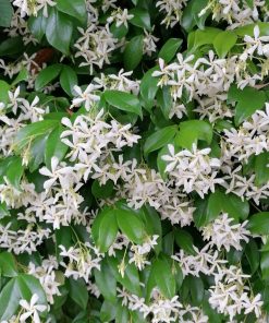 Il Trachelospermum jasminoides è un rampicante sempreverde, con fiori profumati, dalla crescita rigogliosa e un rapido sviluppo vegetativo, con foglie di un bel colore verde scuro intenso. Ha un portamento compatto, che raggiunge a maturità un’estensione superiore ai 5 metri lineari.